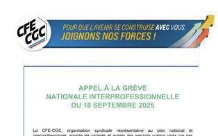CFE-CGC : 18/09/2025 ->APPEL A LA GREVE NATIONALE INTERPROFESSINNELLE