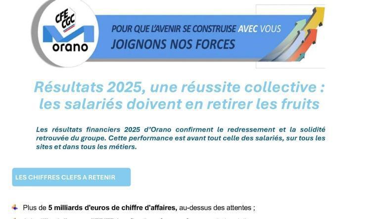Orano : Résultats 2025, une réussite collective : les salariés doivent en retirer les fruits