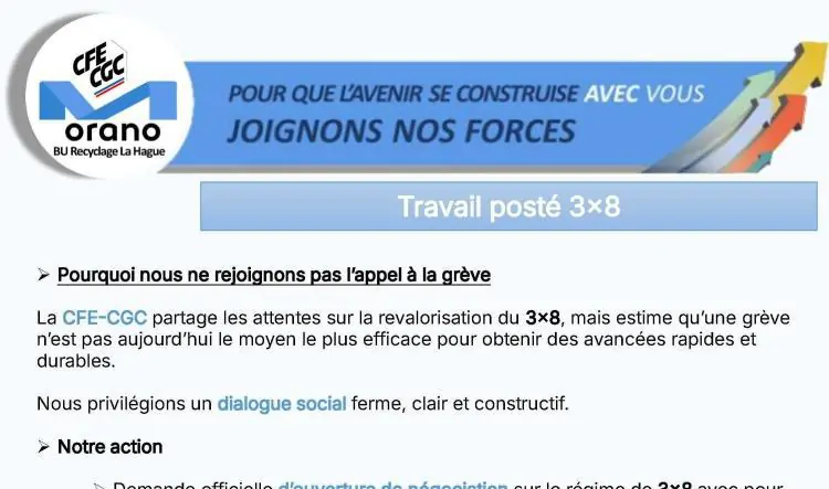La Hague : Travail posté 3x8, position CFE-CGC sur l'appel à la grève