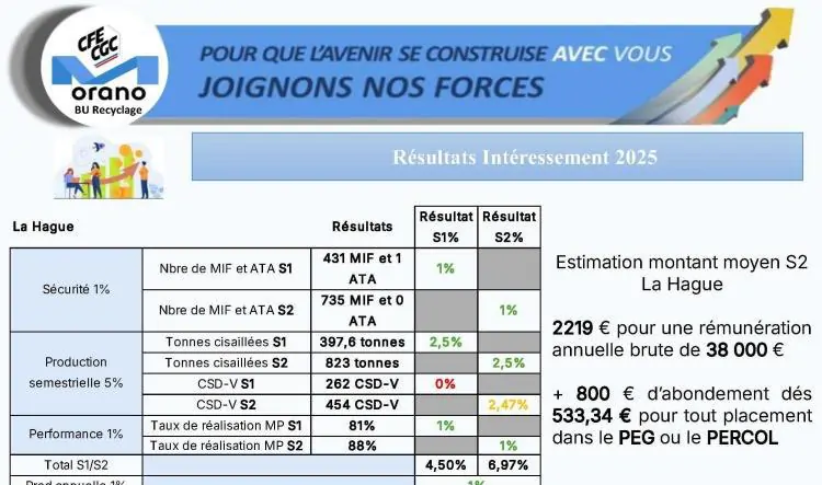 Orano RE : Intéressement --> Résultats 2ième semestre 2025 et annuel en détail