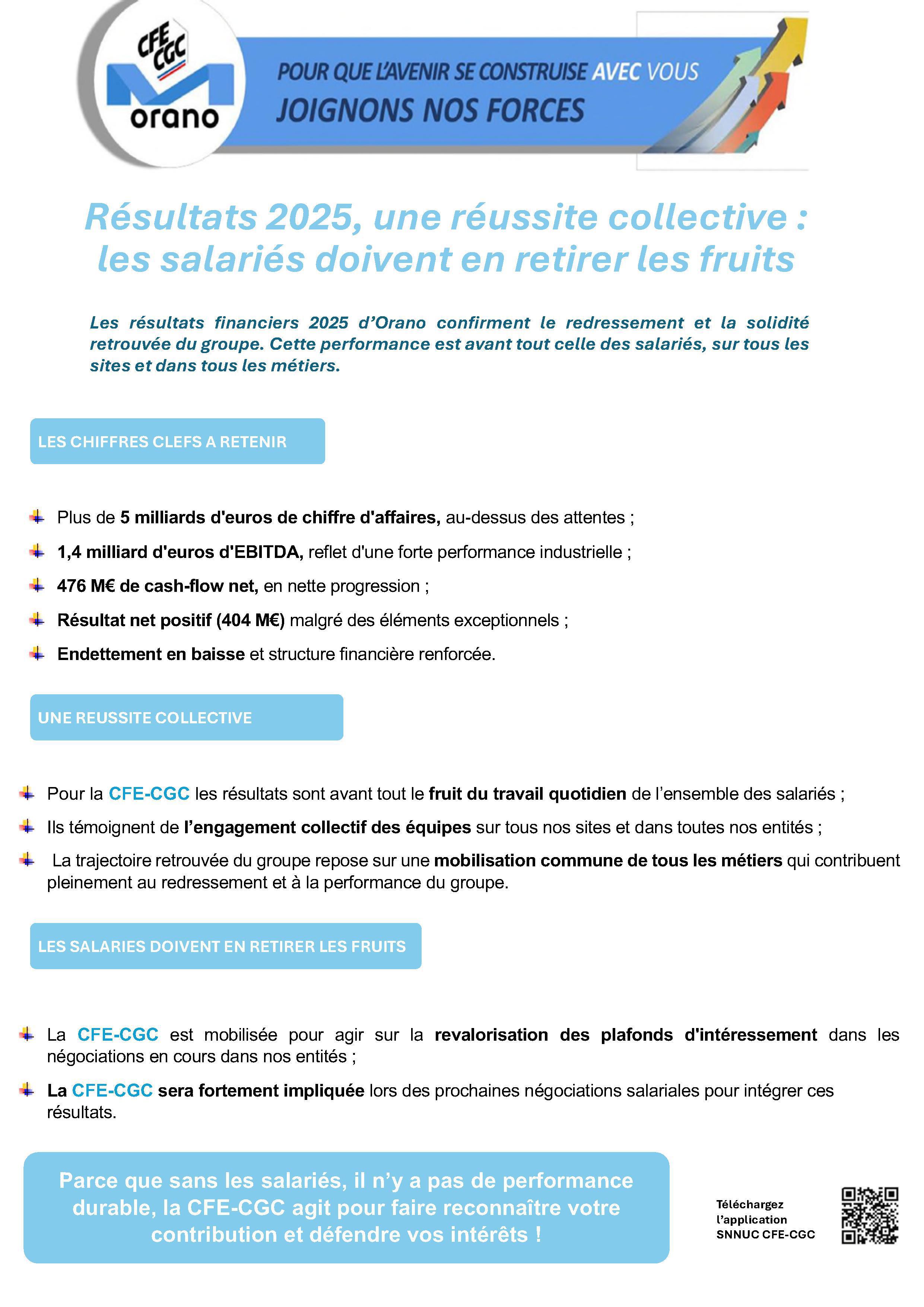 Orano : Résultats 2025, une réussite collective : les salariés doivent en retirer les fruits