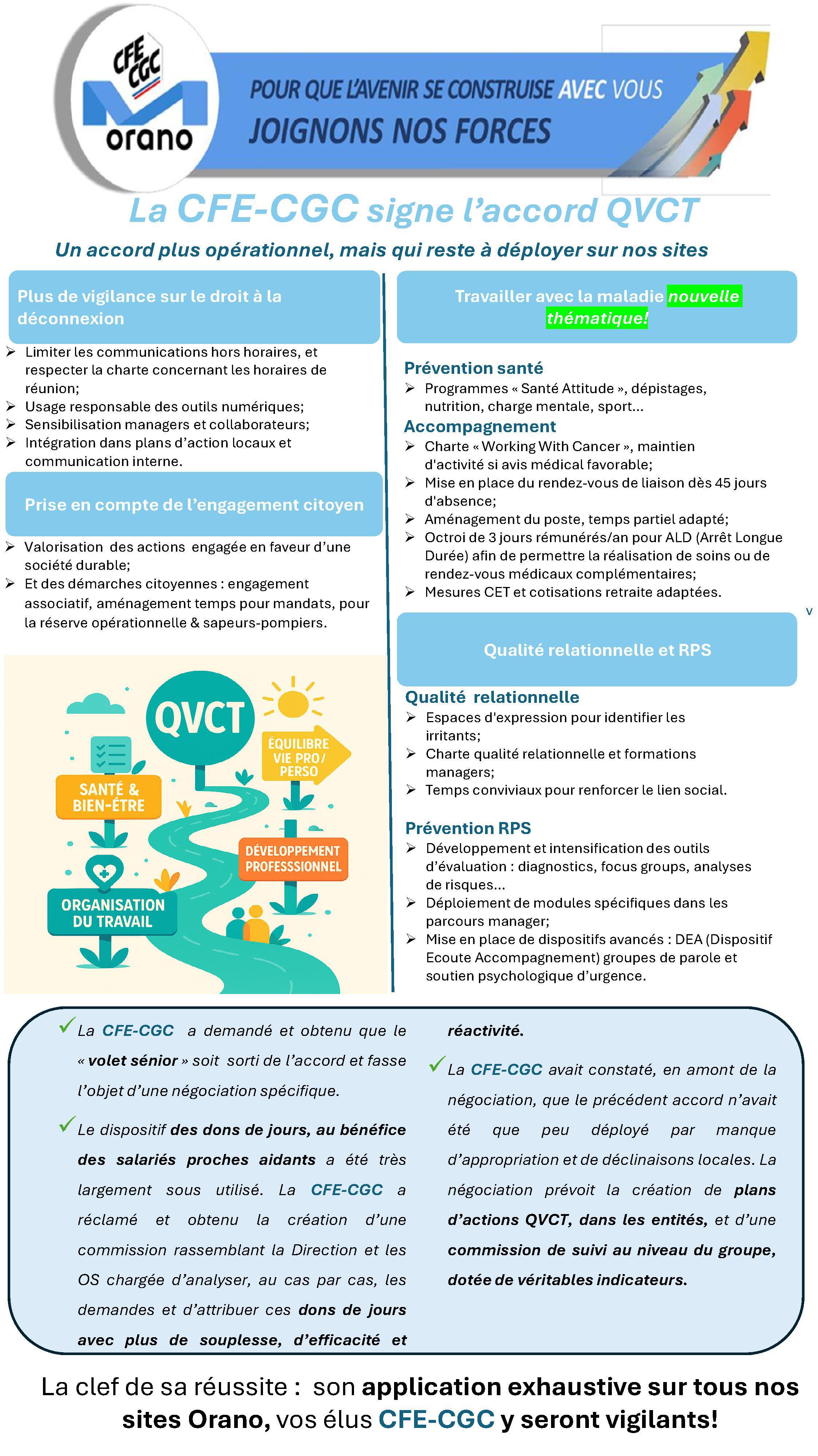 Orano : La CFE-CGC est signataire du nouvel accord Qualité de Vie et Conditions de Travail (QVCT)