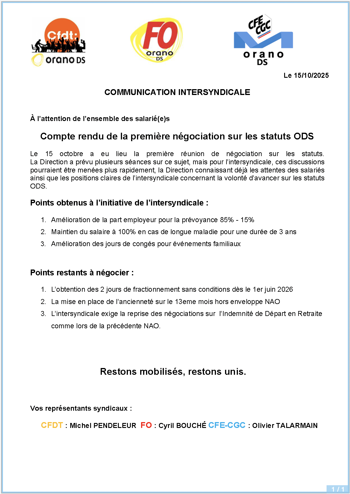 ODS : Compte rendu de la première négociation sur les statuts ODS